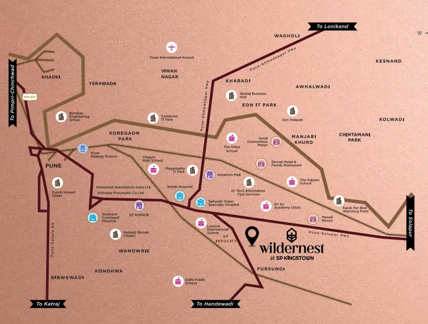 Situated in Manjari, a locality that offers the perfect blend of tranquility and urban connectivity, SP Kingstown provides proximity to Pune’s bustling IT hubs while being surrounded by lush greenery, making it an ideal choice for a balanced lifestyle.